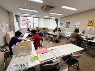 皆さんコーヒーを飲みながら新聞の切り抜きや、資料を紹介して意見